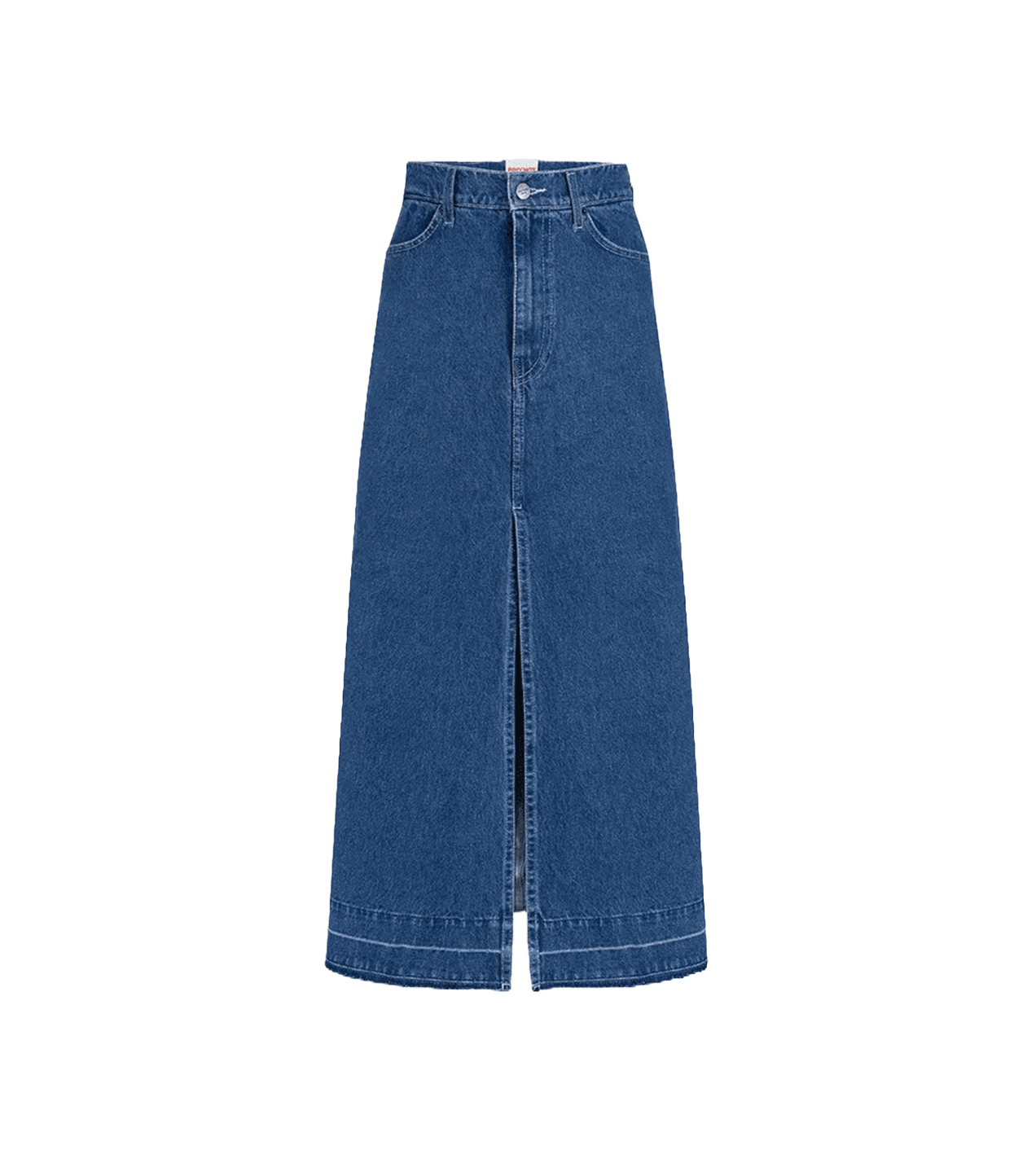 - Wash the denim midi skirt separately from items with zippers, buttons, or other sharp accessories that could snag or damage the fabric.