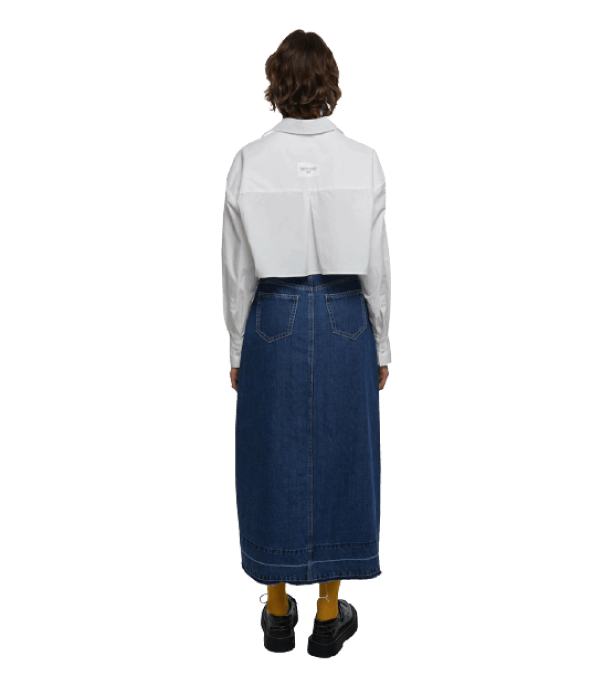 Made from high-quality denim fabric, this midi skirt offers durability and comfort for all-day wear. The mid-length design strikes the perfect balance between casual and chic, making it suitable for various occasions, from casual outings to semi-formal events.